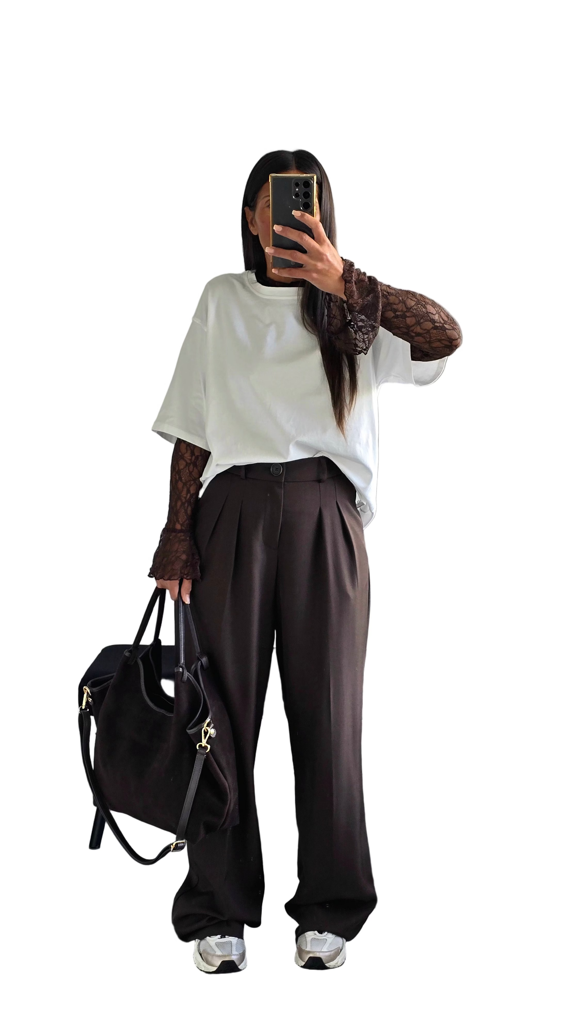 Ce pantalon tailleur chocolat est une pièce forte du vestiaire automne-hiver.