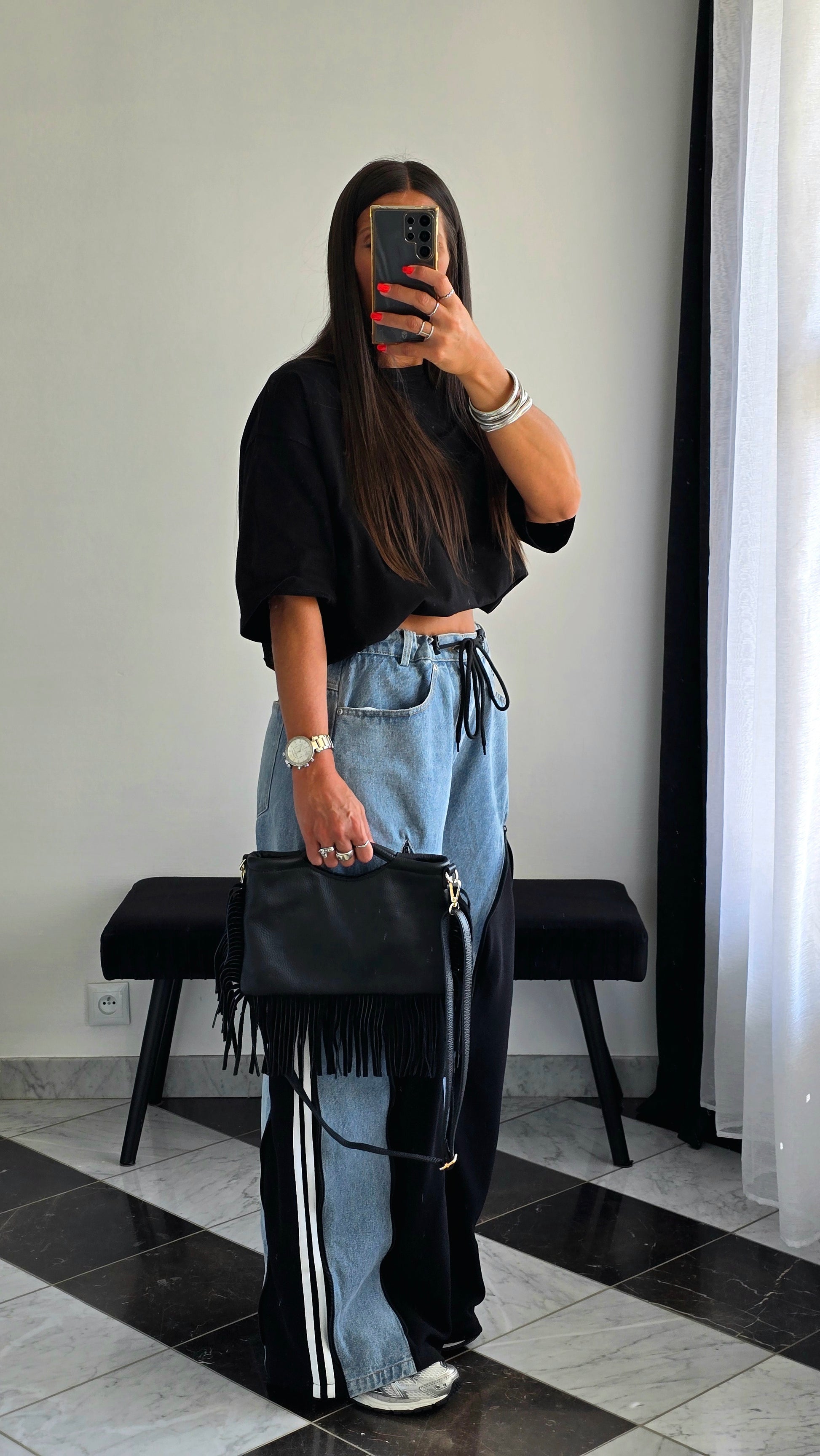 Ce sac en 100% cuir de vachette est la pièce parfaite pour allier élégance et caractère. Avec ses franges sur les côtés et sa coupe structurée, il apporte une touche bohème-chic à tous tes looks. Sa matière en cuir véritable garantit durabilité, souplesse et un aspect authentique qui se patine joliment avec le temps.