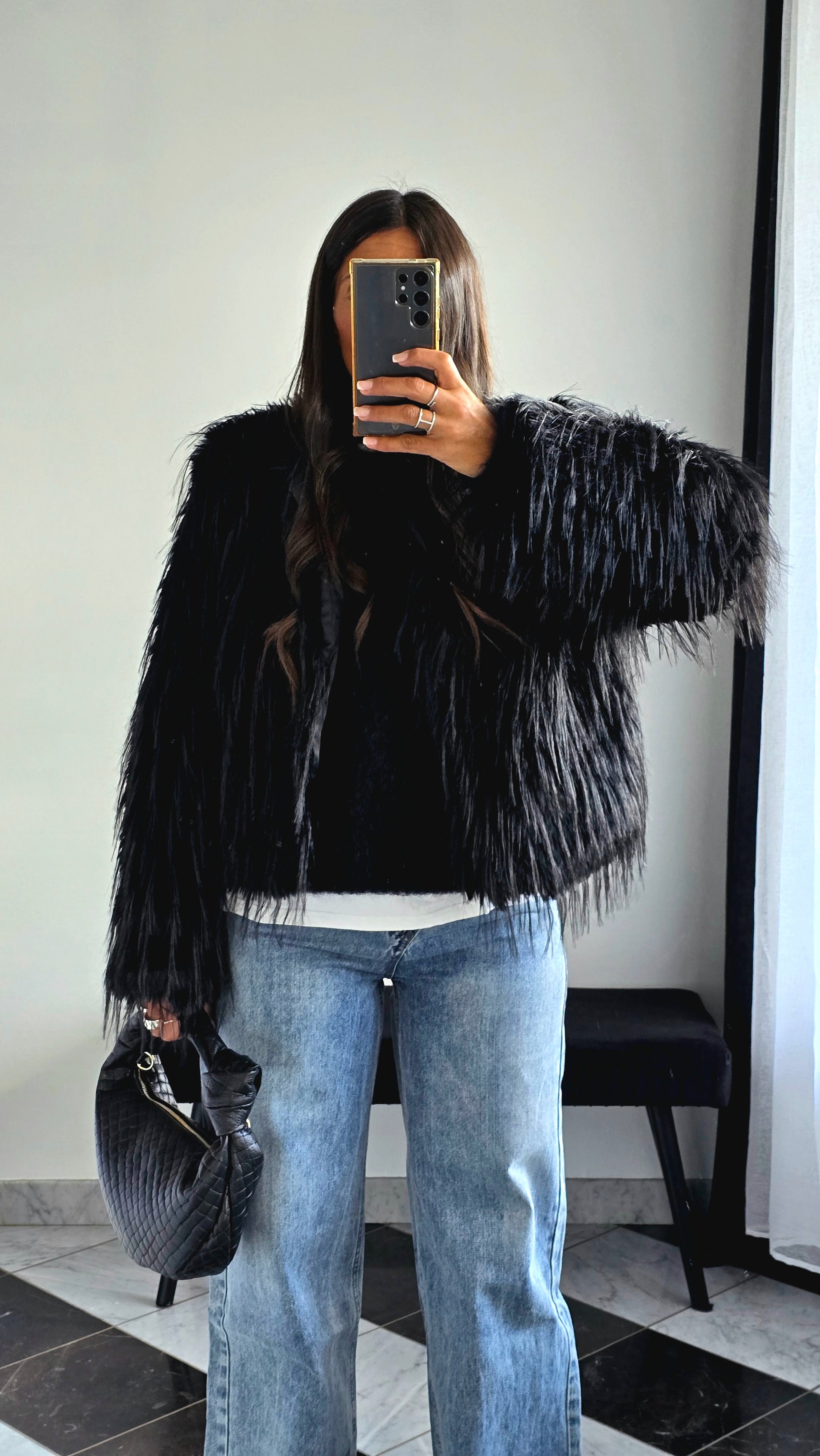 Audacieuse et irrésistiblement tendance, cette veste en fausse fourrure apporte du volume et un style affirmé. Sa texture effet "shaggy" et son tombé fluide font d’elle une pièce phare pour vos looks d’hiver comme de mi-saison.